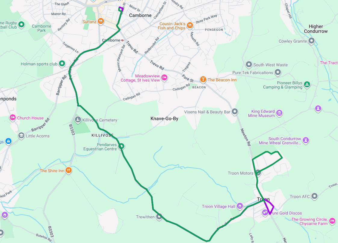 Shuttle service, 49B, between Troon and Camborne